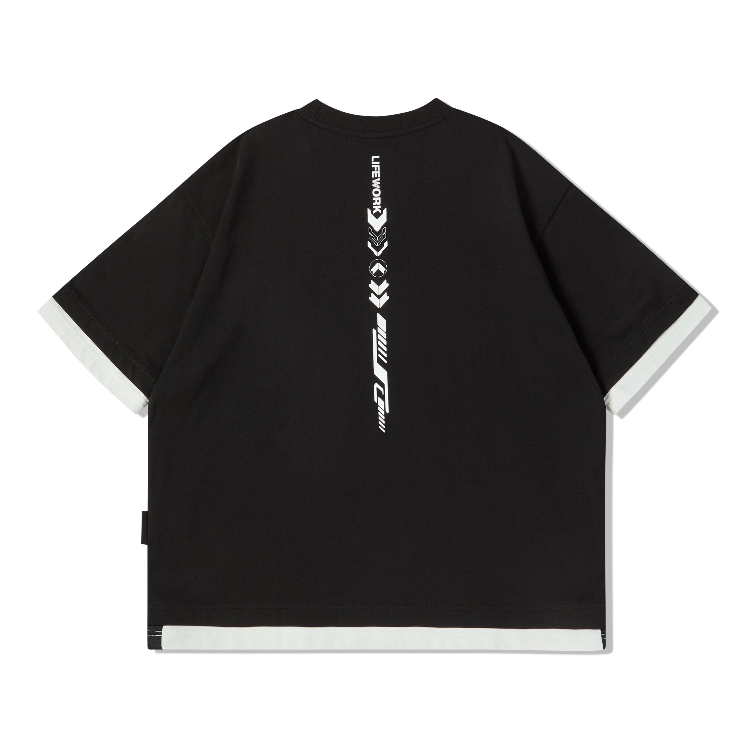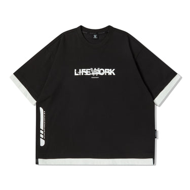 LIFEWORK - FLAME LOGO COLOR BLOCK LAYERED SHORT SLEEVE T-SHIRT [SET UP] BLACK