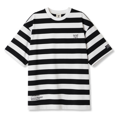 LIFEWORK - SMALL W WAPPEN LOGO WIDE STRIPE SHORT SLEEVE T-SHIRT BLACK