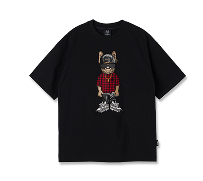 SNAPBACK HIPDOK APPLIQUE SHORT SLEEVE T-SHIRT BLACK