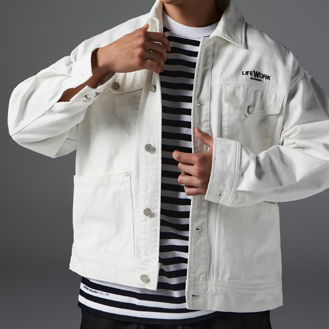LIFEWORK - COTTON TWILL TRUCKER JACKET OFF WHITE