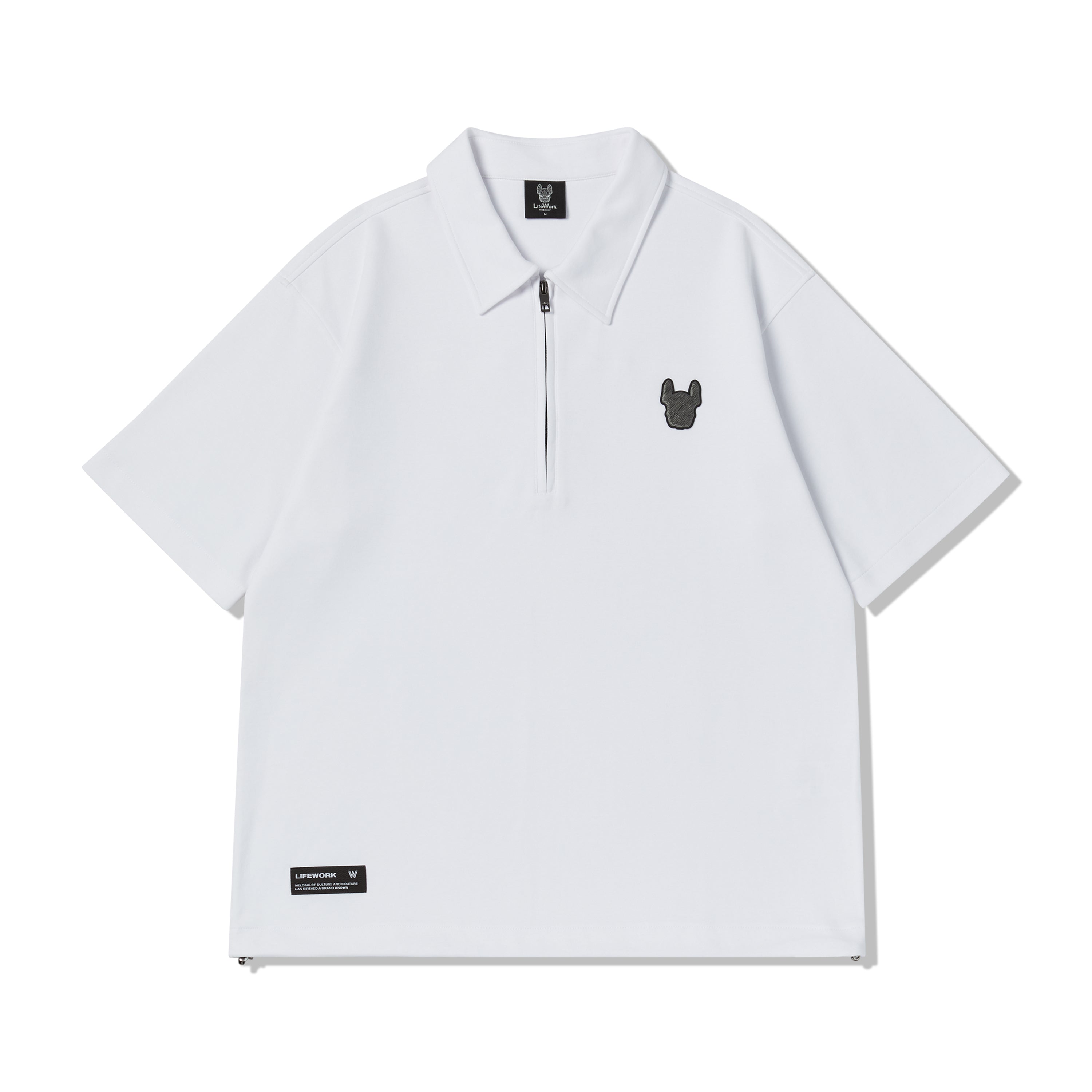 LIFEWORK - LADOK WAPPEN HALF ZIP-UP COLLAR SHORT SLEEVE T-SHIRT WHITE