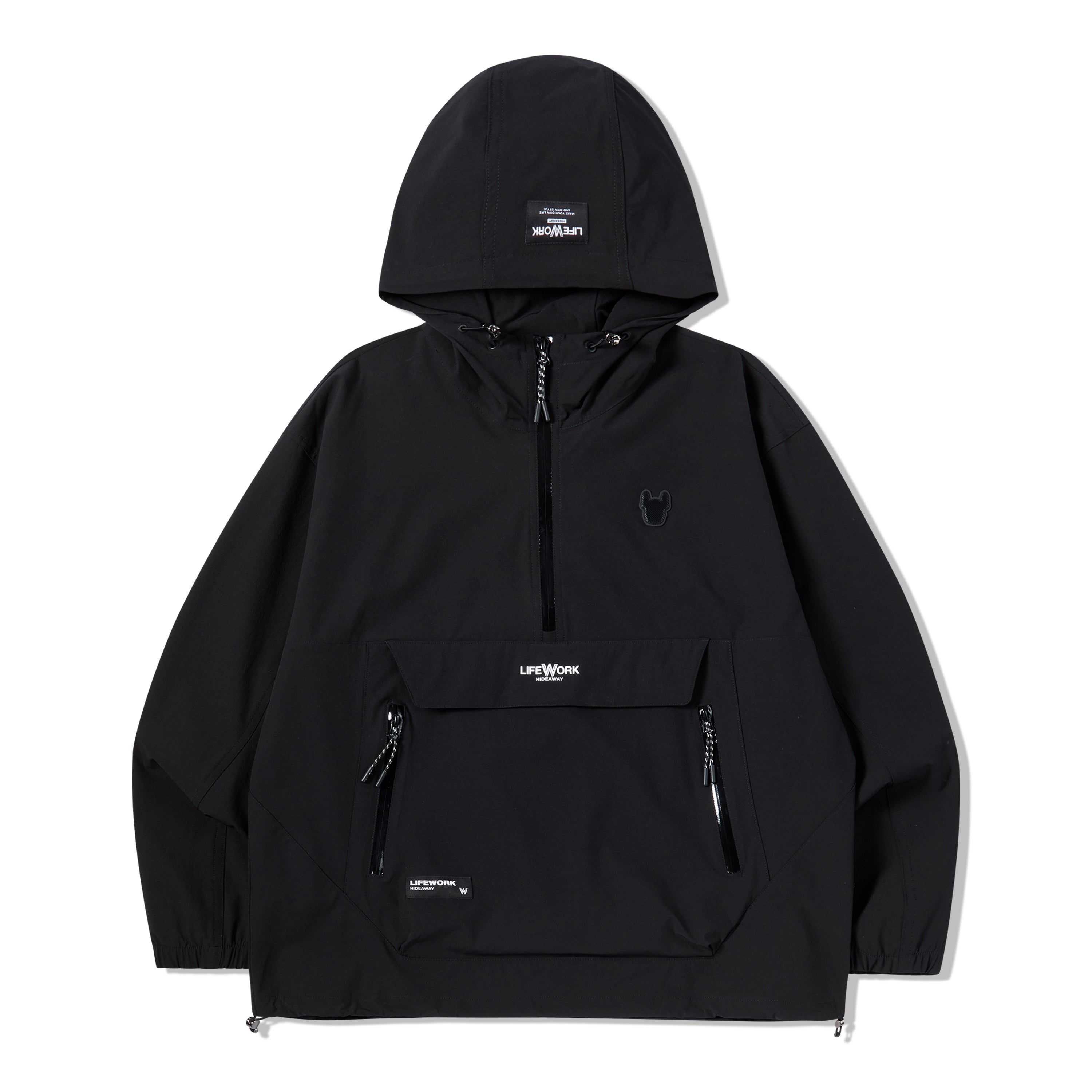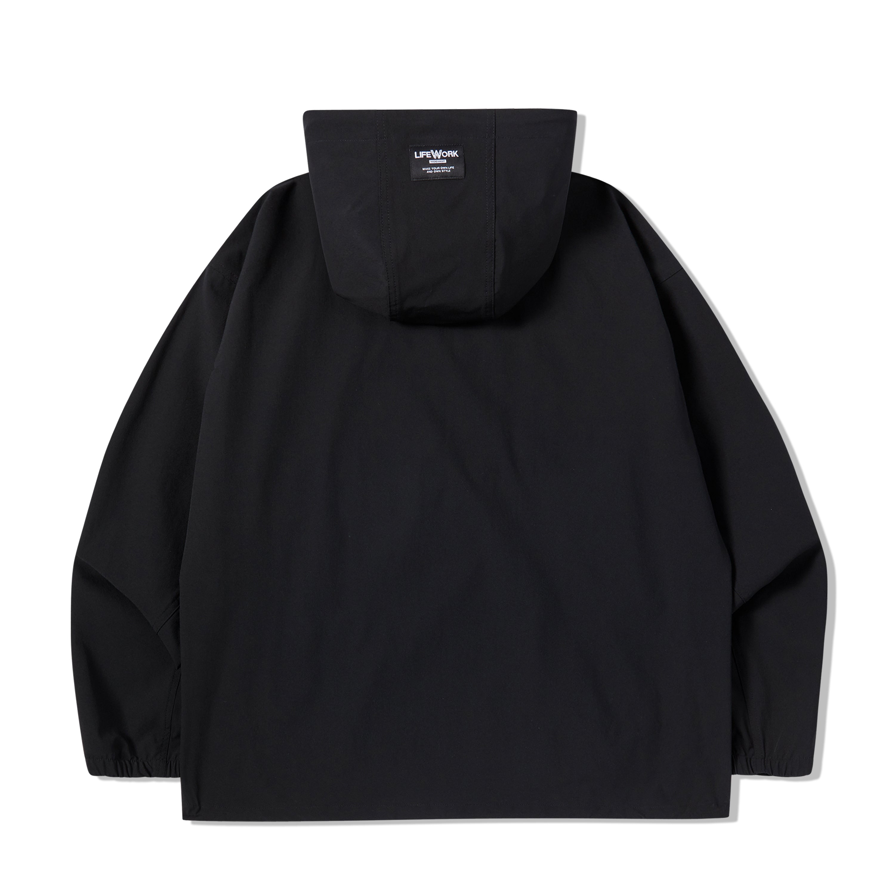 LIFEWORK - NYLON SPAN LONG SLEEVE HOODED ANORAK BLACK