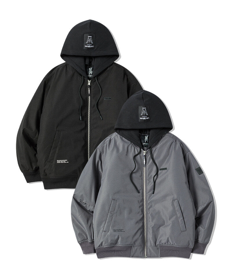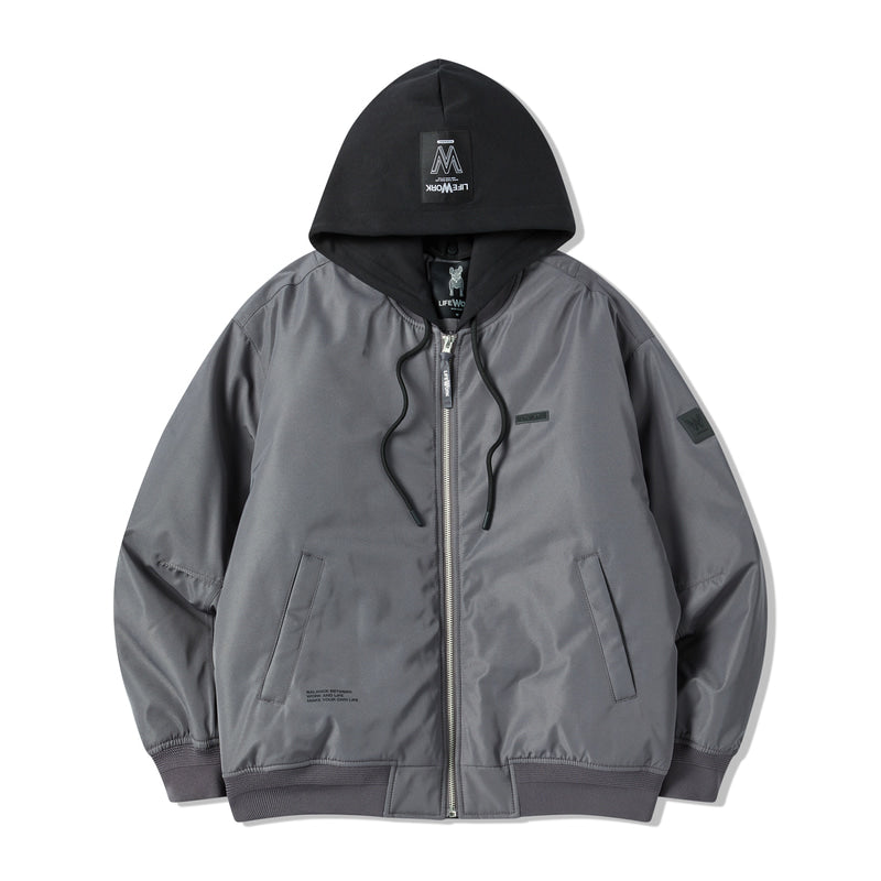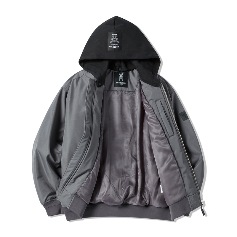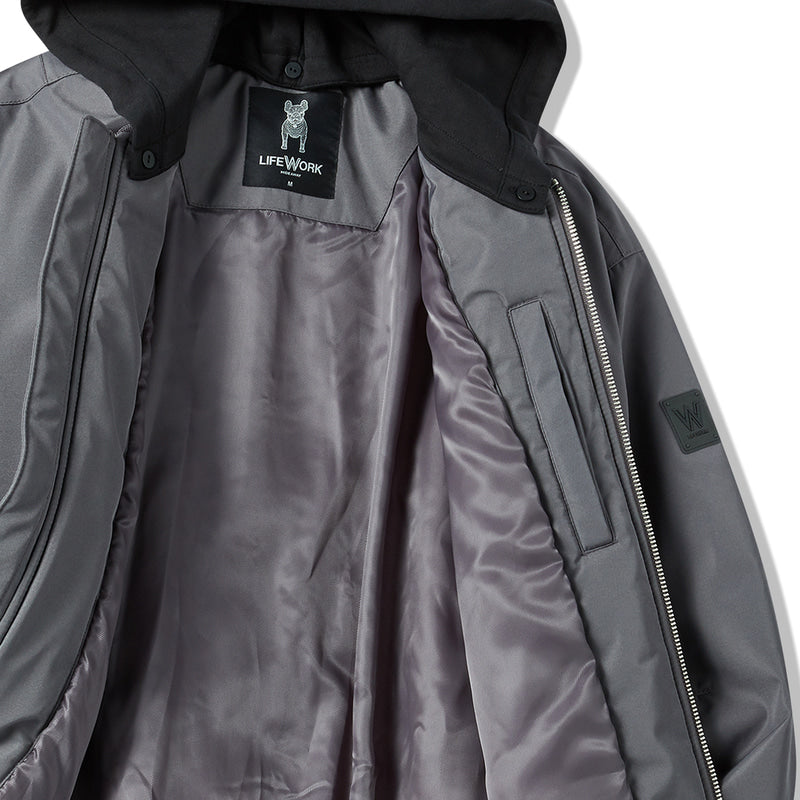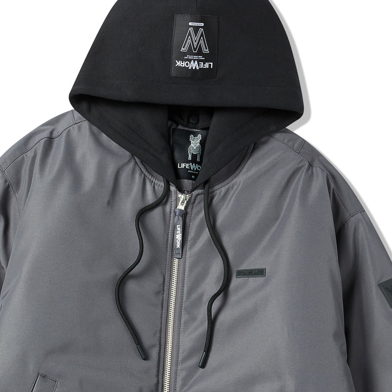 LIFEWORK - MA-1 BASIC HOODED PADDED BOMBER JACKET DARK GREY