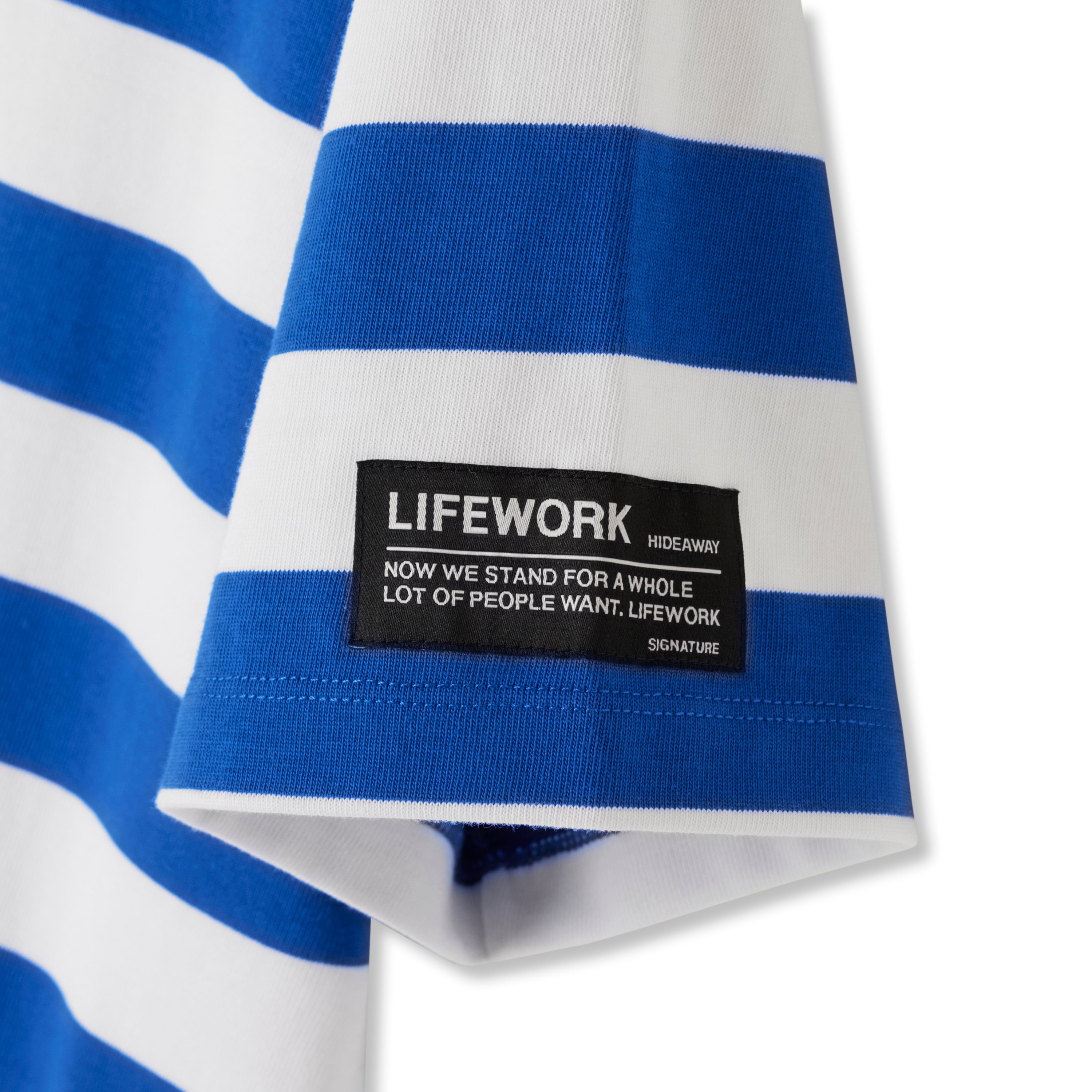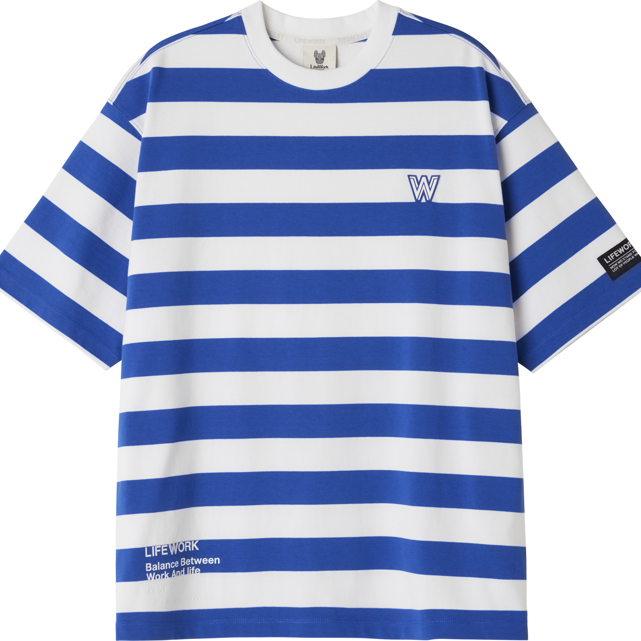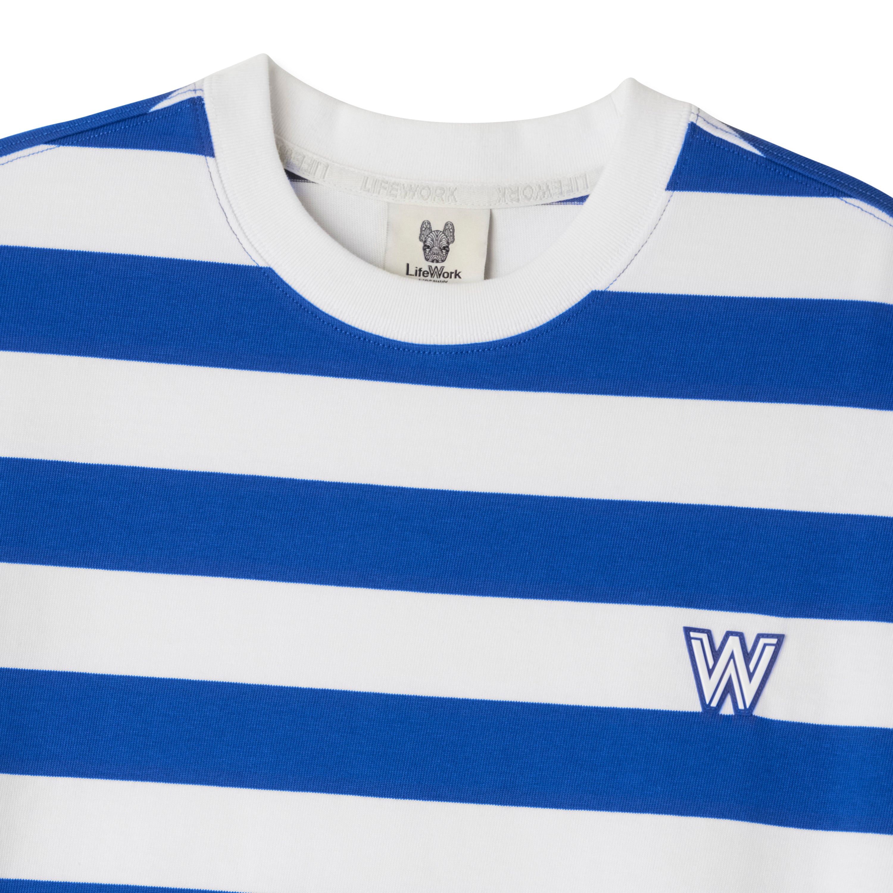 LIFEWORK - SMALL W WAPPEN LOGO WIDE STRIPE SHORT SLEEVE T-SHIRT BLUE