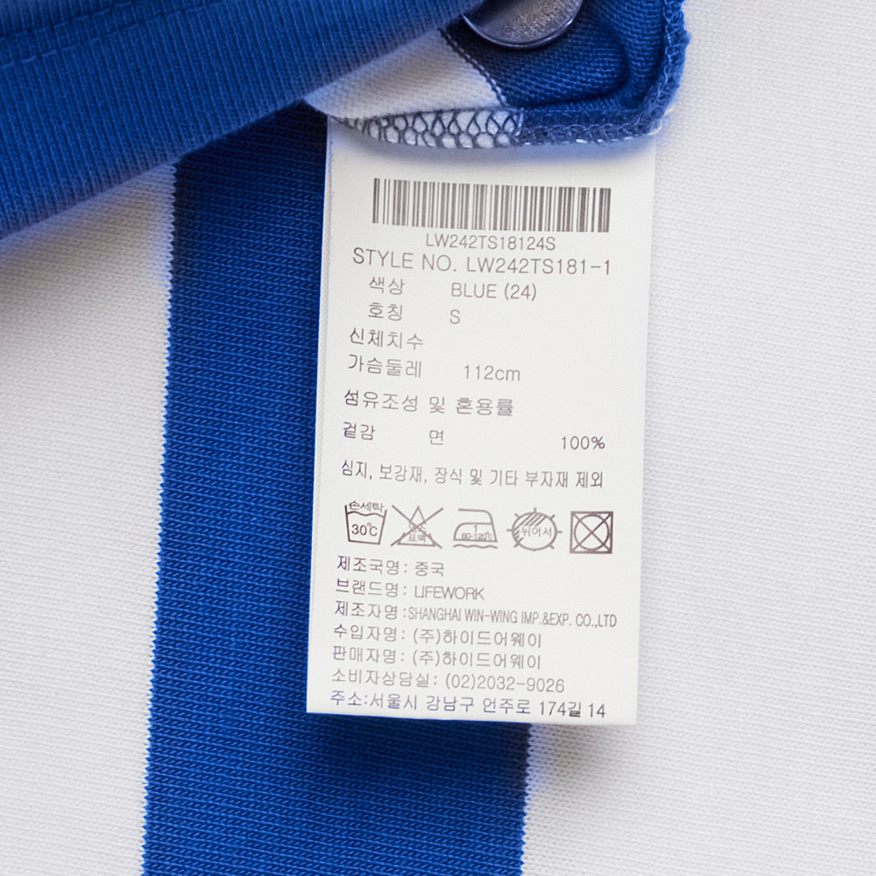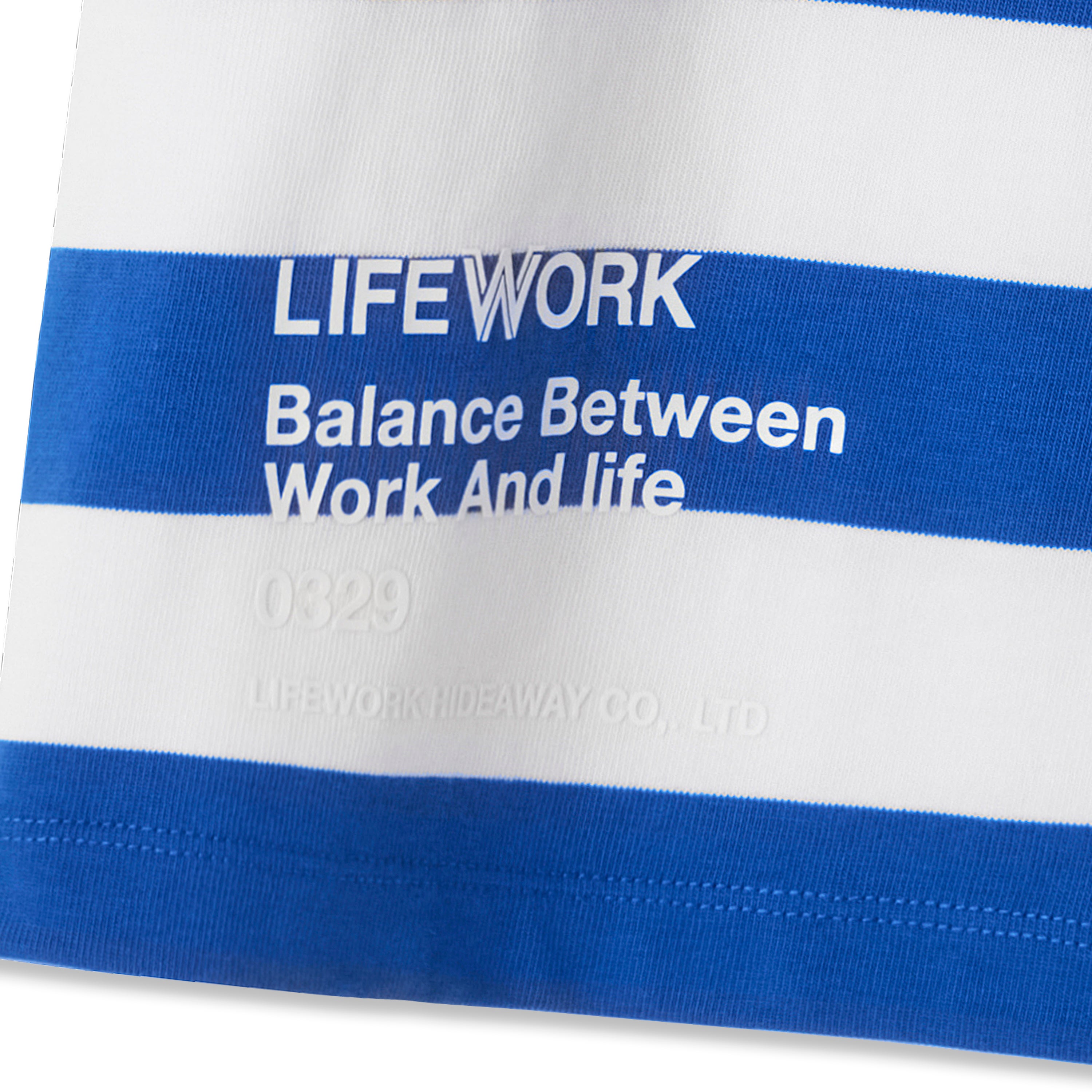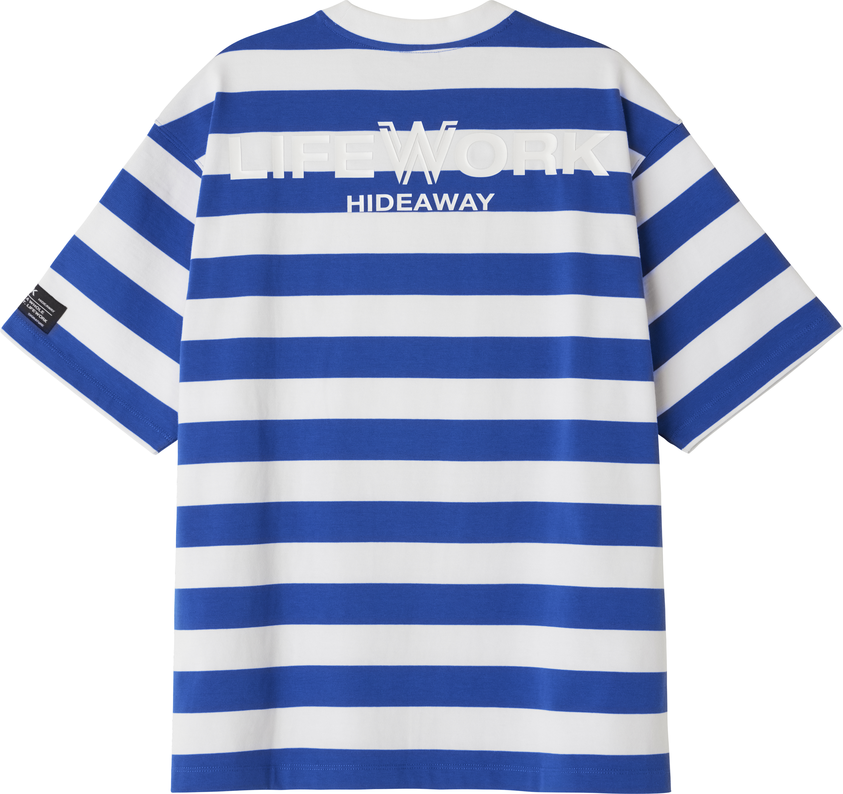 LIFEWORK - SMALL W WAPPEN LOGO WIDE STRIPE SHORT SLEEVE T-SHIRT BLUE