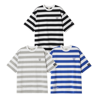 SMALL W WAPPEN LOGO WIDE STRIPE SHORT SLEEVE T-SHIRT BLUE